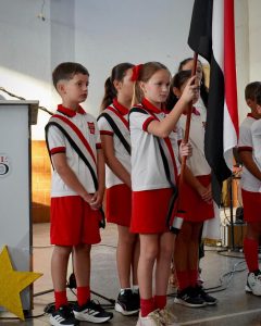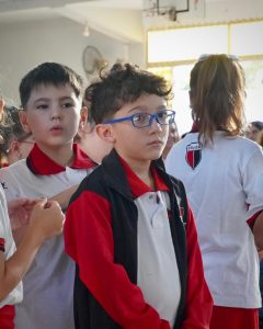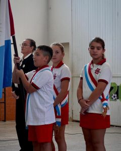 Por la mañana fue el turno para los niveles Inicial y Primario, siendo en un acto llevado a cabo en el salón del edifico. Fue presidido por la directora de ambos niveles, Lic. Lucila Alias. Por el municipio asistieron, la Secretaria de Educación y Cultura, Mgtr. Marisol Nuñez; la Secretaria de Salud. Dra. Laura Cravero y el Director de Turismo, Prof. Sebastián García. Por la familia rojinegra, concurrieron la directora del nivel secundario, Lic. Antonella Gianinetti, el Representa legal, Prof. Damián Borgogno; la presidente del Club Centro Social, Méd. Vet. Anabel Ferrero (acompañada por directivos de la institución); y el gerente de Mutual Centro, Cr. Mario de Paul (junto a otros funcionarios de la mutual).