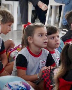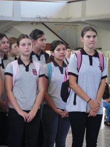 La presencia de la comunidad educativa de ambos niveles del Instituto Sarmiento, con 300 estudiantes, junto al equipo de educadores, los padres y otros familiares directos, como abuelos, generó una afluencia de público que prácticamente colmó las amplias instalaciones del salón.