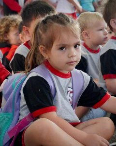 Acto seguido se produjo el retiro de las banderas participantes y tras las fotos del primer día utilizando la escenografía alusiva, cada grupo de alumnos, fue ingresando, junto con sus docentes y familiares a sus aulas respectivas, para comenzar, formalmente, las clases del ciclo inaugurado.