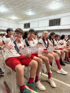 Luego, por la tarde desde la hora 20 se concretó la ceremonia que encabezó la directora del nivel, Lic. Lucila Actis y el representante legal, Prof. Damián Borgogno. Asistió como autoridad municipal, la Secretaria de Salud, Dra. Lorena Cravero; y de la familia institucional rojinegra: la presidente del club Centro Social, Méd. Vet. Anabel Ferrero junto a otros directivos; y Simón Seeber por Mutual Centro y Fundación Construirnos. Familiares de los estudiantes y medios de prensa completaron la concurrencia.