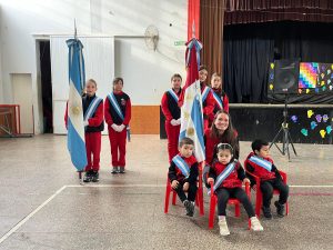 La parte protocolar comenzó con el ingreso de las banderas de ceremonia del nivel inicial. Previamente, estaban ya ubicadas las restantes banderas de la entidad educativa (las de ceremonia y las institucionales). Tras la interpretación del Himno Nacional, que los alumnos del primario tradujeron en lenguaje de señas, se dio paso a las palabras alusivas, que estuvo a cargo de la docente de la sala de 5 años, María Belén Sánchez. Su mensaje fue una descripción de lo que se entiende en la actualidad por conmemoración de esta fecha, la que fue modificándose con el tiempo y actualizándose a las visiones del presente.