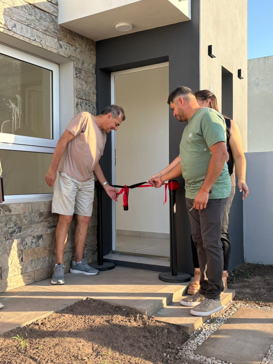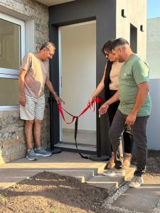 La dirigente Irma Poggi entregó las llaves del flamante bien a sus titulares y -finalmente- el staff directivo de la fundación, con las autoridades municipales y los adjudicatarios, efectuaron el corte simbólico de cintas.