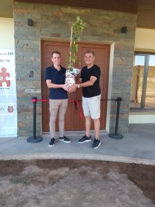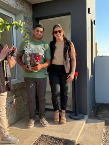 Marcelo Pivetta hizo entrega de un limonero, un obsequio que instaló la fundación en cada acto inaugural, para honrar la memoria de los abuelos inmigrantes que decían que la mejor inversión era la que se “hacía en ladrillos” (refrán que corporiza Fundación Construirnos) e igualmente, por plantar en cada patio árboles útiles como los frutales. El cítrico es una de las plantas que más provecho brinda a sus propietarios. Beatriz Varesio hizo lo propio con la llave de la nueva vivienda, constituyendo ese otro de los momentos protocolares esenciales en la entrega de una unidad habitacional que -en este caso- será para hacer realidad el sueño de la casa propia.