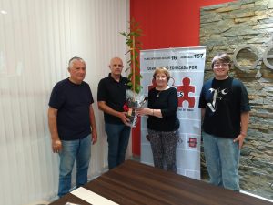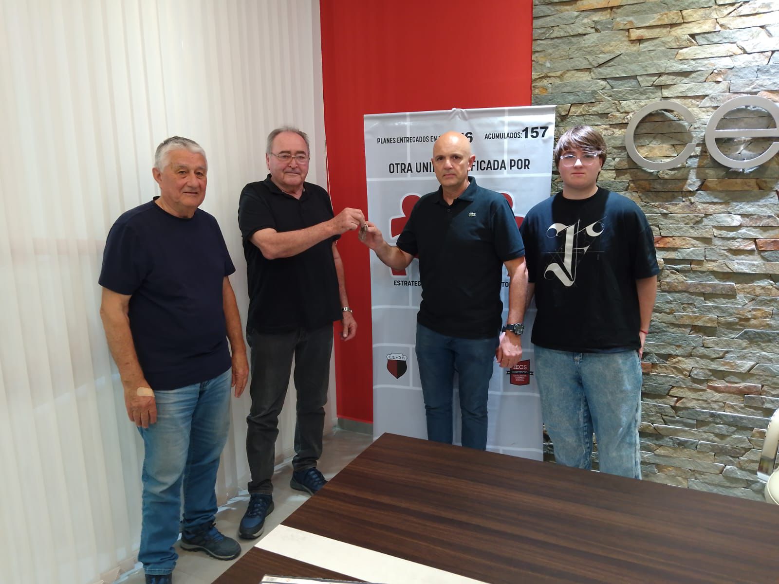 En un acto interno, por expreso pedido del adjudicatario, asistieron, en nombre de la entidad, el presidente, Federico Díaz; el Tesorero, Raúl Gagliardi, la dirigente Irma Poggi, el administrativo Marcelo Masín; la arquitecta Daniela Alesso (quien tuvo a su cargo el diseño y dirección técnica de la obra); y el titular de la empresa constructora, Sr. Pedro Juárez y su señora esposa.