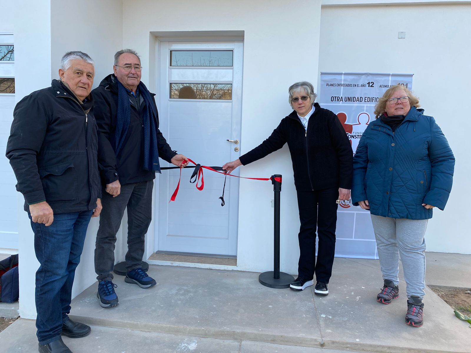 Seguidamente, la secretaria de la entidad, Beatriz Varesio, entregó a la titular, las llaves de la nueva casa terminada. Acto seguido, los directivos Federico Díaz, Raúl Gagliardi y Beatriz Varesio, junto a la adjudicataria efectuaron el simbólico corte de cintas para dejar inaugurada una construcción con cocina comedor, un dormitorio, sanitario y un garaje.